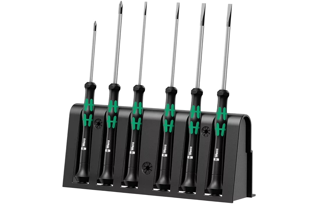 WE-118152 2035/6 B Kraftform Micro Набор отвёрток прецизионных + подставка, 6 пр., PH 0x60/1x80, SL 0.40x2.5x80/0.50x3.0x80/0.60x3.5x80/0.80x4.0x80