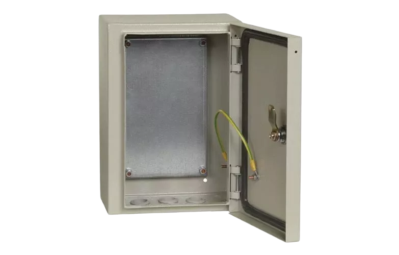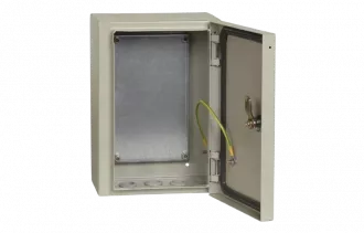 Сварной металлический корпус со съемной монтажной панелью. Дверца корпуса запирается на замок. Ключ замка имеет единый секрет. Корпуса со степенью защиты IP54, имеют на дверце уплотнение из двухкомпонентного герметика и пыле- влагонепроницаемый замок.