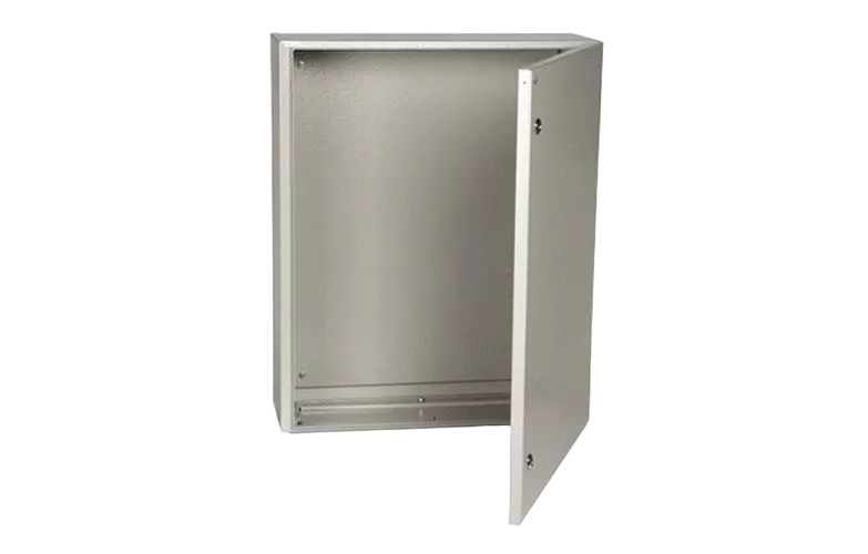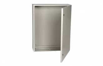 Сварной металлический корпус со съемной монтажной панелью. Дверца корпуса запирается на замок. Ключ замка имеет единый секрет. Корпуса со степенью защиты IP54, имеют на дверце уплотнение из двухкомпонентного герметика и пыле- влагонепроницаемый замок.