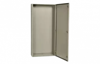 Сварной металлический корпус со съемной монтажной панелью. Дверца корпуса запирается на замок. Ключ замка имеет единый секрет. Корпуса со степенью защиты IP54, имеют на дверце уплотнение из двухкомпонентного герметика и пыле- влагонепроницаемый замок.