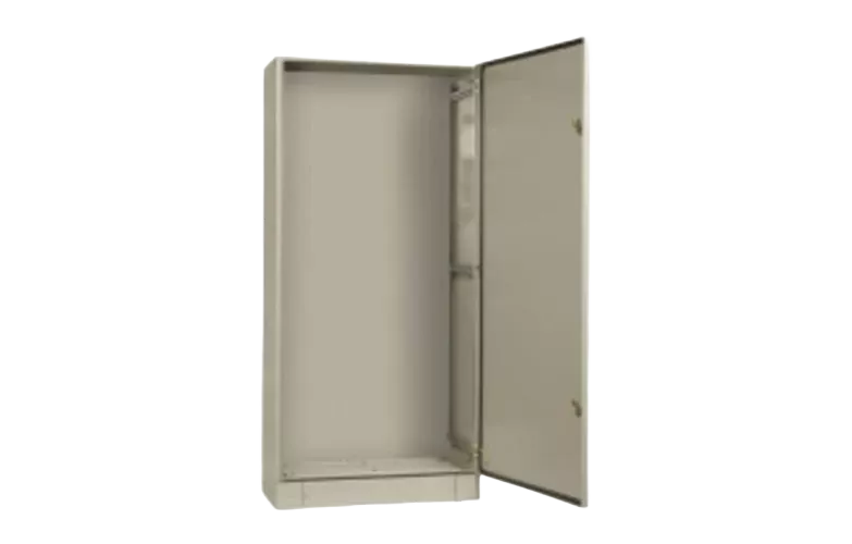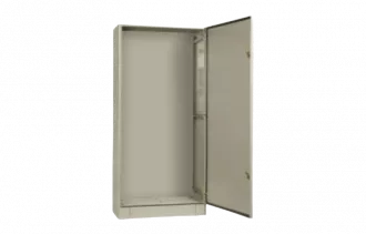 Сварной металлический корпус со съемной монтажной панелью. Дверца корпуса запирается на замок. Ключ замка имеет единый секрет. Корпуса со степенью защиты IP54, имеют на дверце уплотнение из двухкомпонентного герметика и пыле- влагонепроницаемый замок.