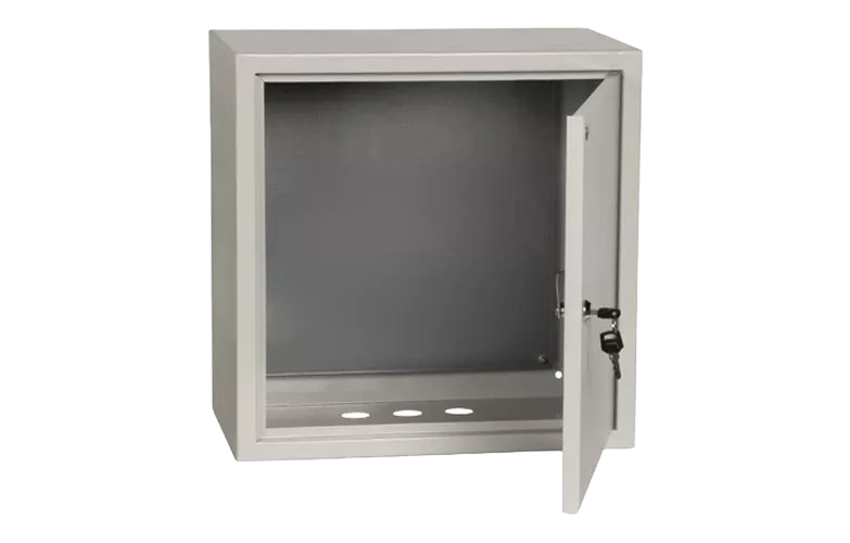 Сварной металлический корпус со съемной монтажной панелью. Дверца корпуса запирается на замок. Ключ замка имеет единый секрет. Корпуса со степенью защиты IP54, имеют на дверце уплотнение из двухкомпонентного герметика и пыле- влагонепроницаемый замок.