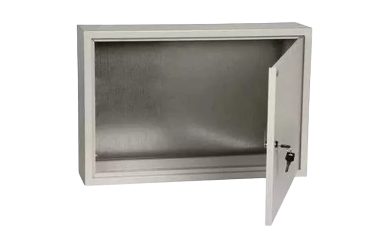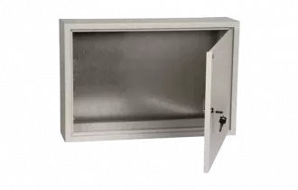 Сварной металлический корпус со съемной монтажной панелью. Дверца корпуса запирается на замок. Ключ замка имеет единый секрет. Корпуса со степенью защиты IP54, имеют на дверце уплотнение из двухкомпонентного герметика и пыле- влагонепроницаемый замок.