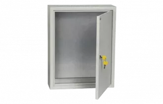 Сварной металлический корпус со съемной монтажной панелью. Дверца корпуса запирается на замок. Ключ замка имеет единый секрет. Корпуса со степенью защиты IP54, имеют на дверце уплотнение из двухкомпонентного герметика и пыле- влагонепроницаемый замок.