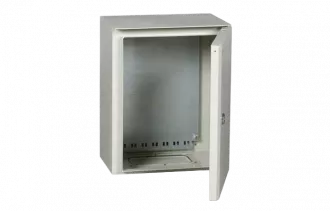 Сварной металлический корпус со съемной монтажной панелью. Дверца корпуса запирается на замок. Ключ замка имеет единый секрет. Корпуса со степенью защиты IP54, имеют на дверце уплотнение из двухкомпонентного герметика и пыле- влагонепроницаемый замок.