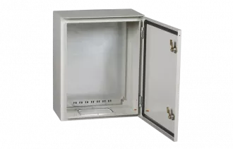 Сварной металлический корпус со съемной монтажной панелью. Дверца корпуса запирается на замок. Ключ замка имеет единый секрет. Корпуса со степенью защиты IP54, имеют на дверце уплотнение из двухкомпонентного герметика и пыле- влагонепроницаемый замок.