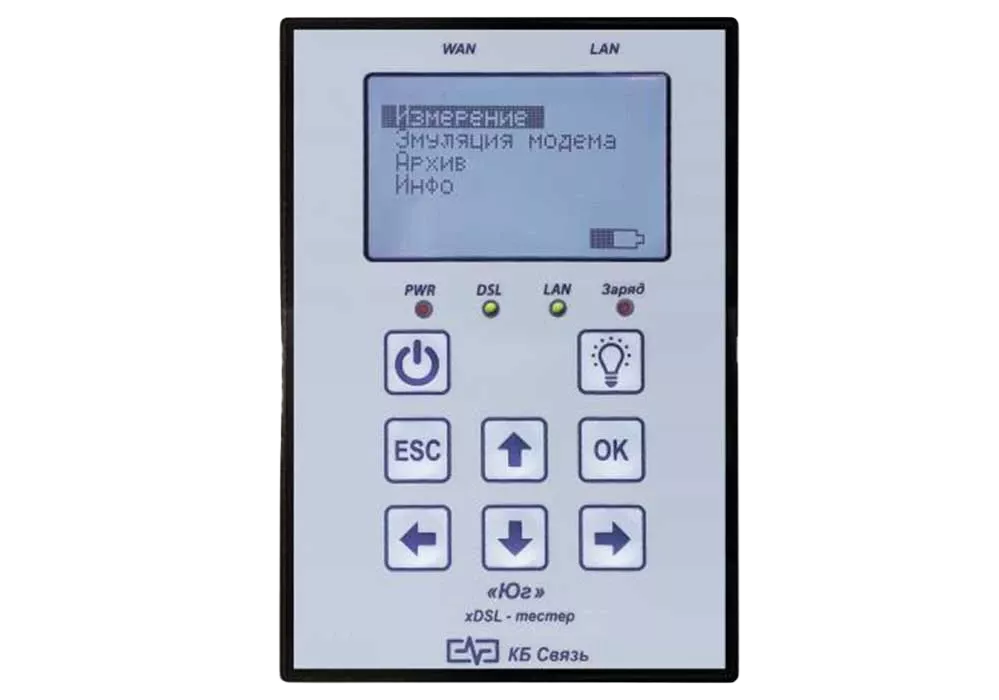 ЮГ (верс. 7) тестер ADSL с фонарем освещения. предназначен для диагностики и быстрой оценки качества подключения канала широкополосного доступа с применением технологии семейства ADSL, ADSL2, ADSL2+.