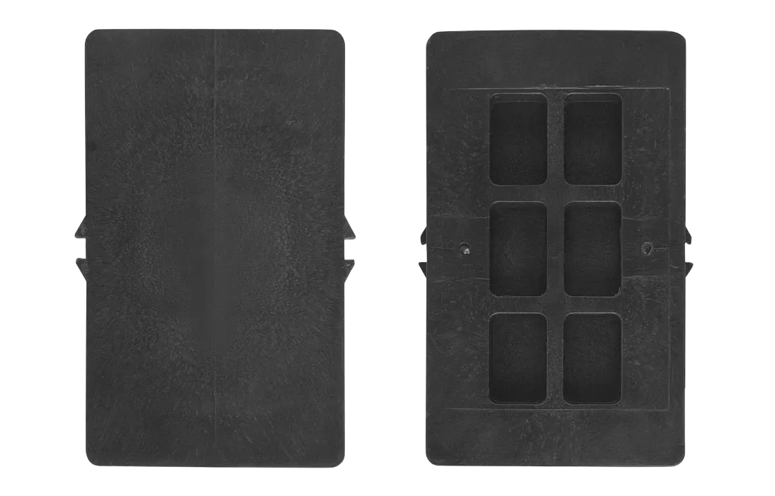 Заглушка изготавливается из пластика. Герметизация вводимых кабелей осуществляется за счёт использования эластичного материала залитого по периметру заглушки.