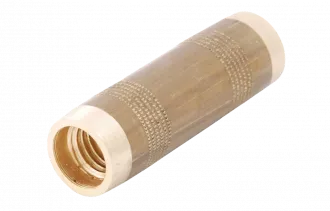 Латунная муфта предназначена для соединения резьбовых стержней заземления друг с другом. Она изготовлена таким образом, чтобы стержни соприкасались друг с другом в самом центре муфты и движущая энергия, необходимая их заглублению в почву, муфте не передавалась. Таким образом, не происходит "рассеивание" ударного импульса и механическая нагрузка с муфты снимается.
