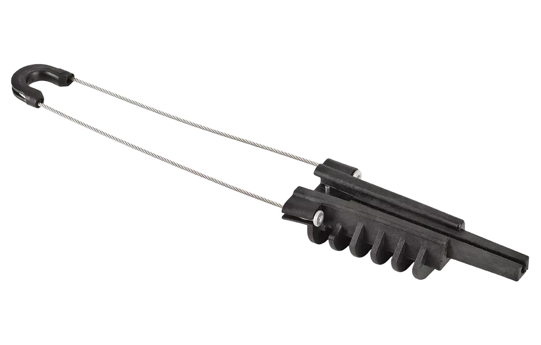 Предназначен для крепления оптического кабеля с внешним диэлектрическим силовым элементом (тросом). Позволяет просто и быстро закрепить кабель типа "8" за вынесенный диэлектрический трос. Нет необходимости оголять или же отделять несущий трос. Обеспечивает значительное сокращение продолжительности процесса подвес кабеля.