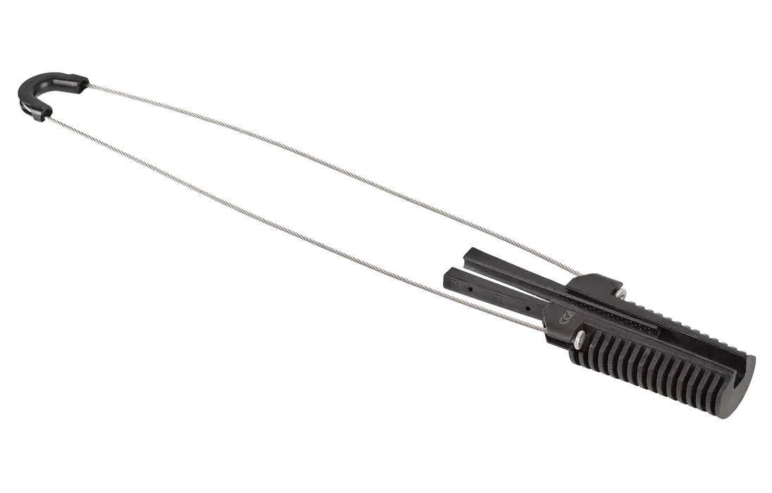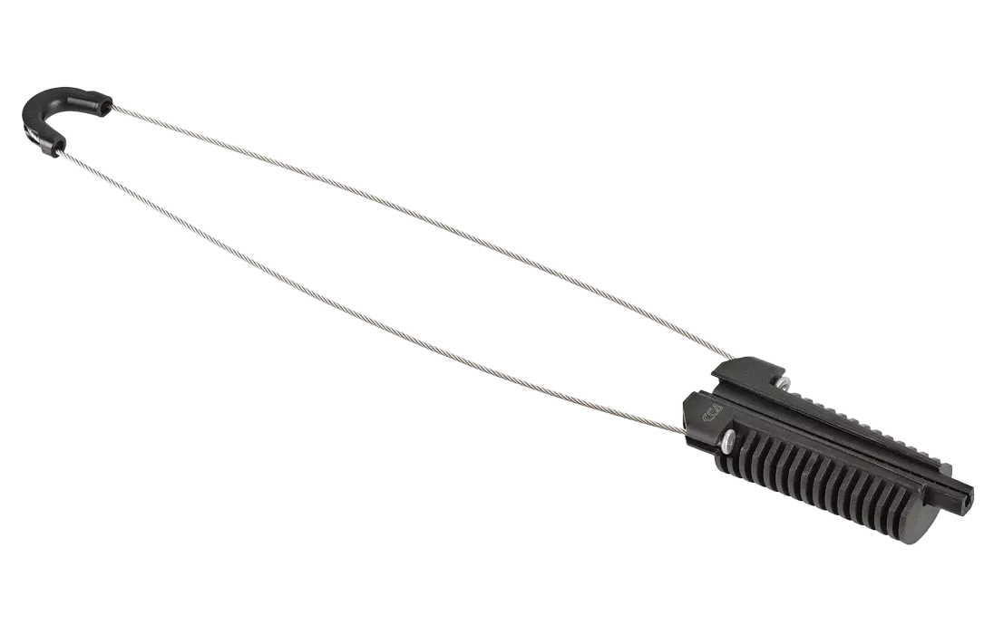 Предназначен для подвески круглых самонесущих кабелей типа ОКСН диаметром от 4 до 7 мм при воздушной прокладке. Аналог зажима ACADSS 6.