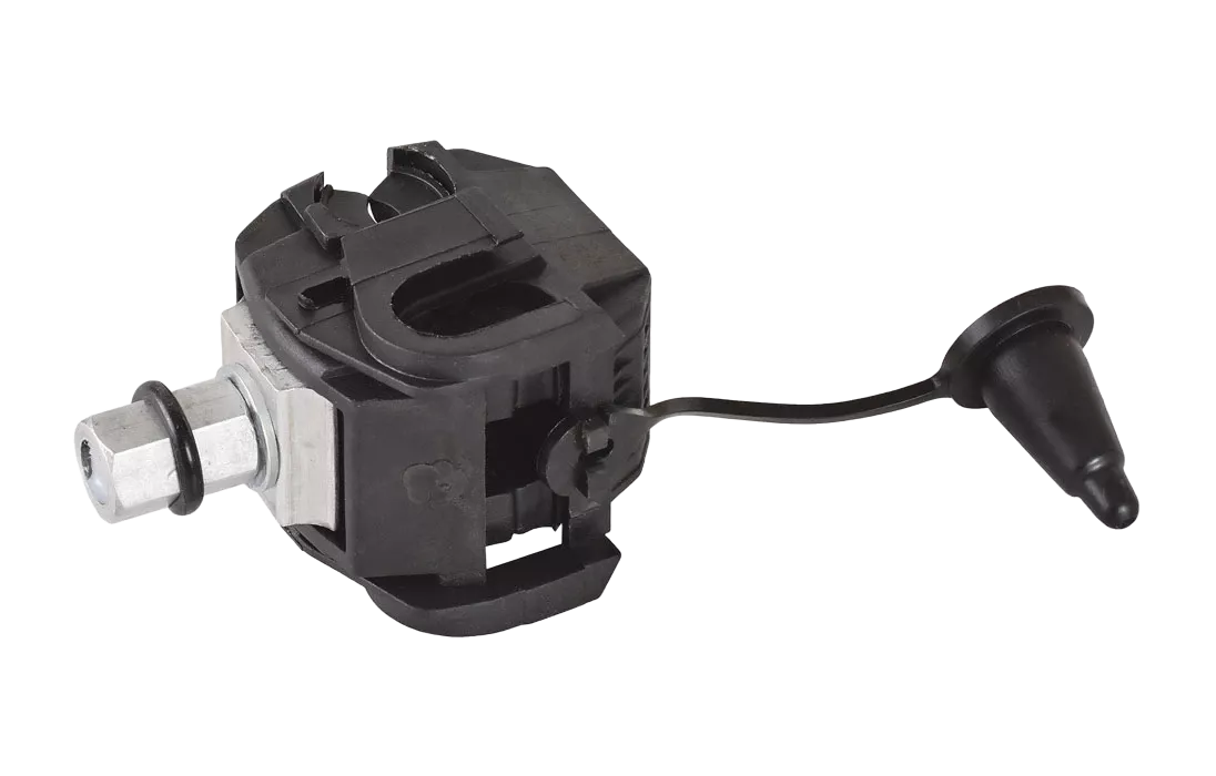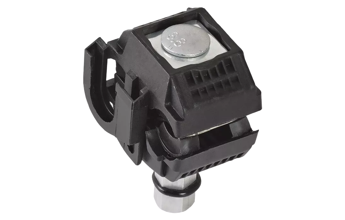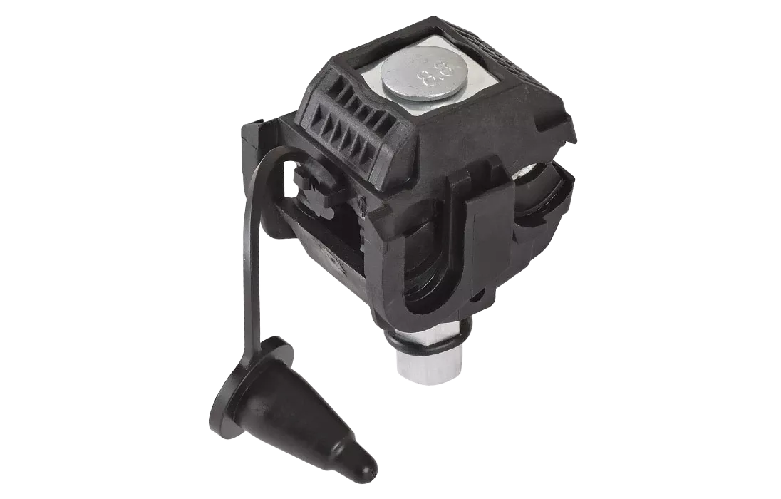Предназначен для подключения ответвляющихся линий к магистральной. Посредством прокола соединяются два провода без удаления изоляционного слоя. Чтобы предупредить окисление в месте прокола внутри есть специальная смазка, а контакт обеспечивается пластинами с пирамидальными зубьями и калиброванной головкой срывного типа. Зажимы оснащены второй головкой для демонтажа, оставаясь при этом продуктом одноразового монтажа. Посредством их замены можно безопасно соединить провода или необходимые элементы цепи. Качественный зажим для СИП кабеля является гарантией максимально быстрого и безопасного монтажа. Отличительной особенностью продукта является высокое качество материалов изготовления. Сечение соединяемых проводников 16-120 мм² (не изолированный провод) с 16-35 мм² (изолированный провод).