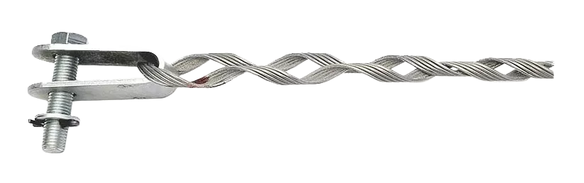 Зажим состоит из силовой части, которая представляет собой U-образную прядь из нескольких спиральных проволок, скрепленных между собой специальным раствором, с внутренней стороны которых нанесет абразив. Обеспечивает прочность заделки кабеля и не влияет на механические и оптические характеристики кабеля.