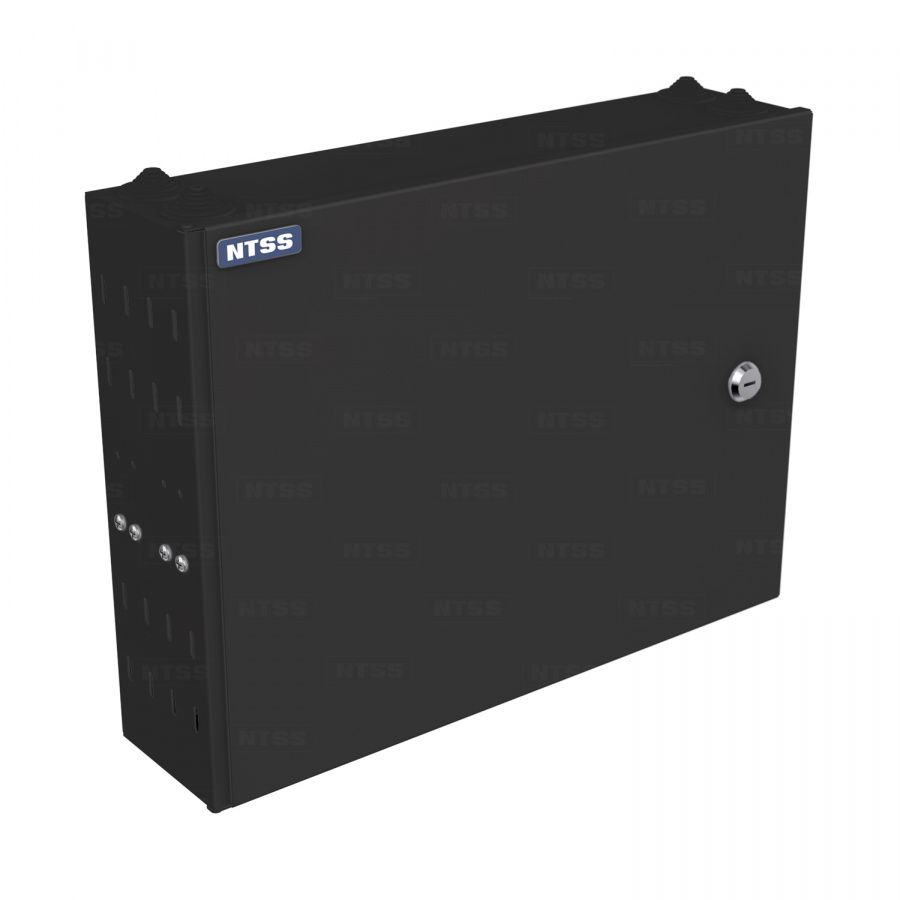 Кросс NTSS оптический настенный частично укомплектованный 48 портов SC (планка SC 24 порта - 2шт, сплайс-кассета-2шт) черный RAL 9005