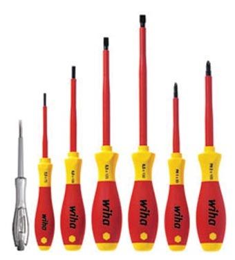 Набор из 7 отверток с индикатором напряжения Wiha для винтов со шлицем и Phillips.