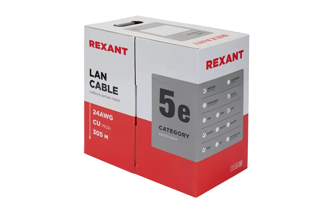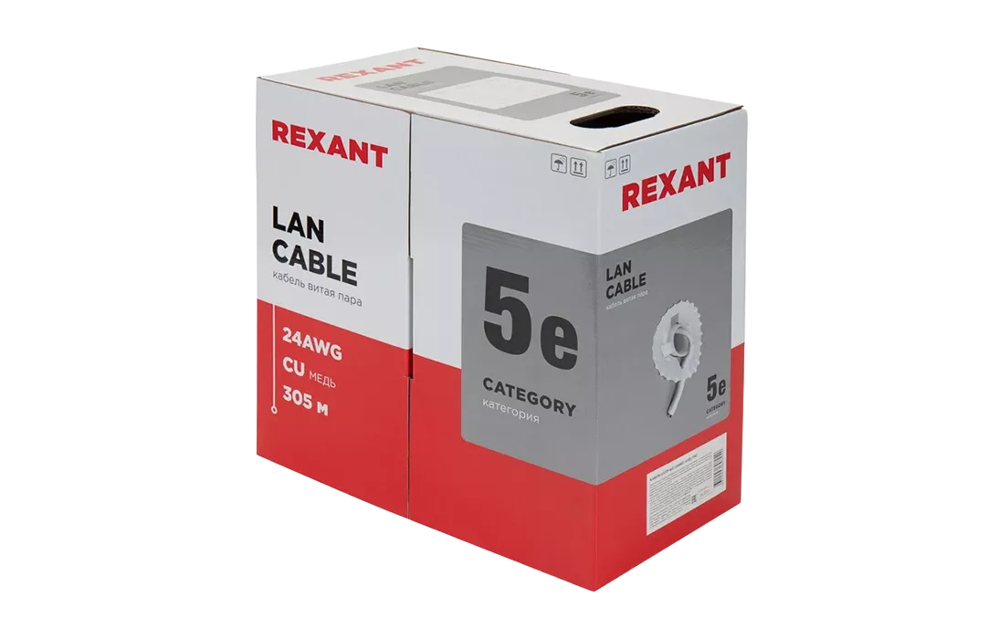 01-0043 Кабель витая пара REXANT UTP 4PR 24AWG, CAT5e (бухта 305 м)