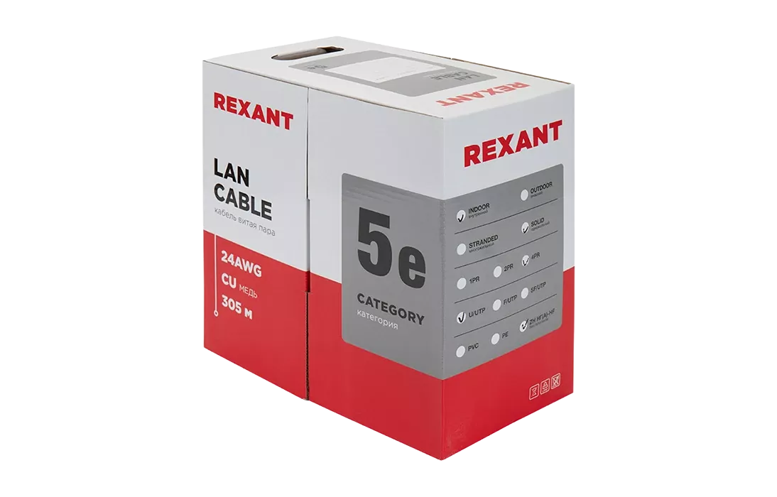 01-0049 REXANT Кабель витая пара UTP 4PR 24AWG, CAT5e, нг(А)-HF, LSZH (бухта 305 м)