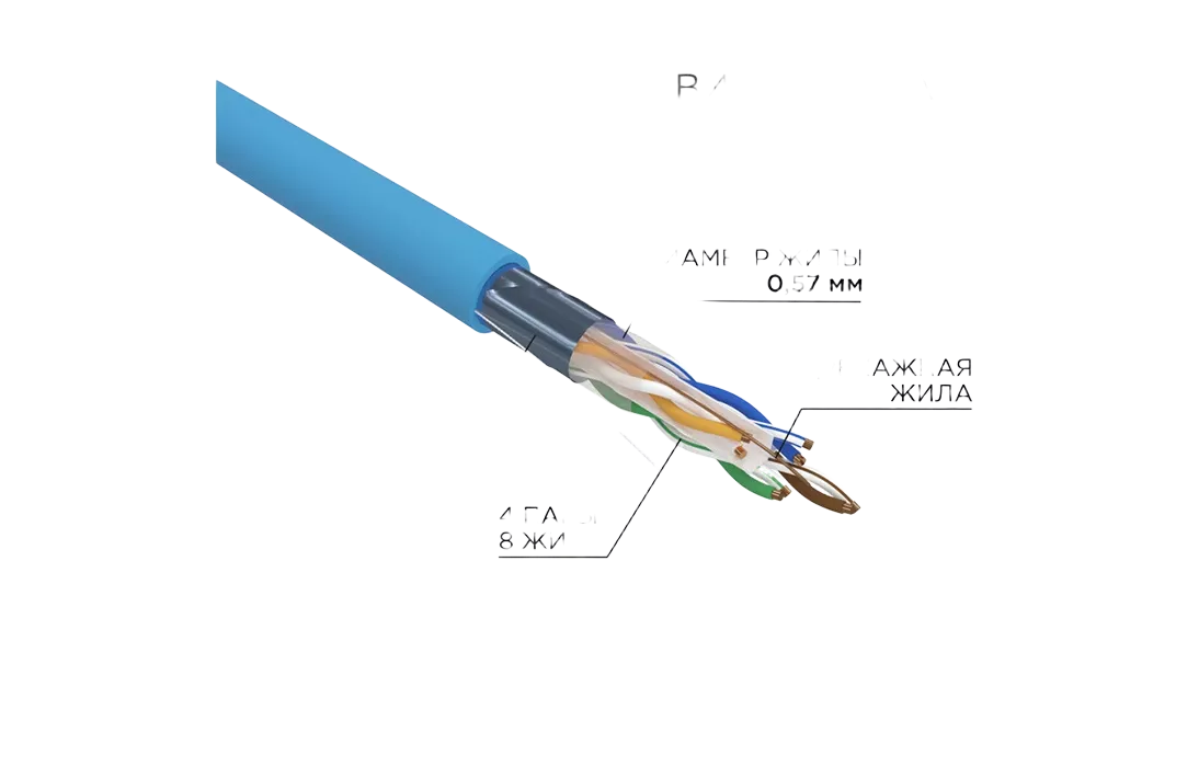 В основе кабеля лежат пары, образованные двумя токопроводящими медными проводниками, покрытыми изоляцией из ПВХ и скрученными между собой с определенным шагом навивки и защищенными внешней оболочкой.