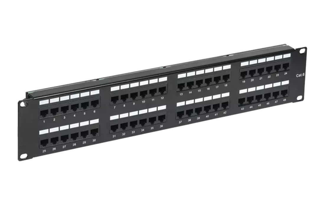 02-0232 REXANT PRO Патч-панель с кабельными органайзерами 19", 2U, 48 портов, RJ-45, CAT 6, UTP