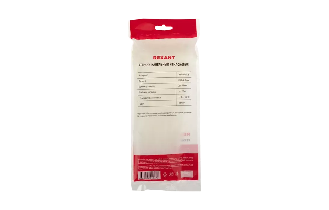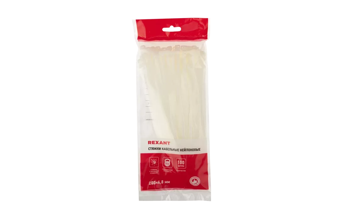07-0200-5 Хомут-стяжка кабельная нейлоновая REXANT 200 x4,8 мм, белая, упаковка 100 шт.