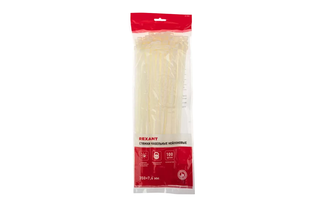 07-0352 Хомут-стяжка кабельная нейлоновая REXANT 350 x7,6 мм, белая, упаковка 100 шт.