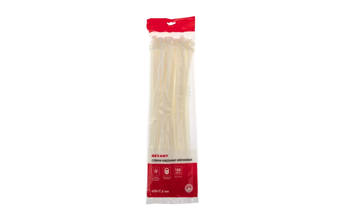 07-0450-8 Хомут-стяжка кабельная нейлоновая REXANT 450 x7,6 мм, белая, упаковка 100 шт.