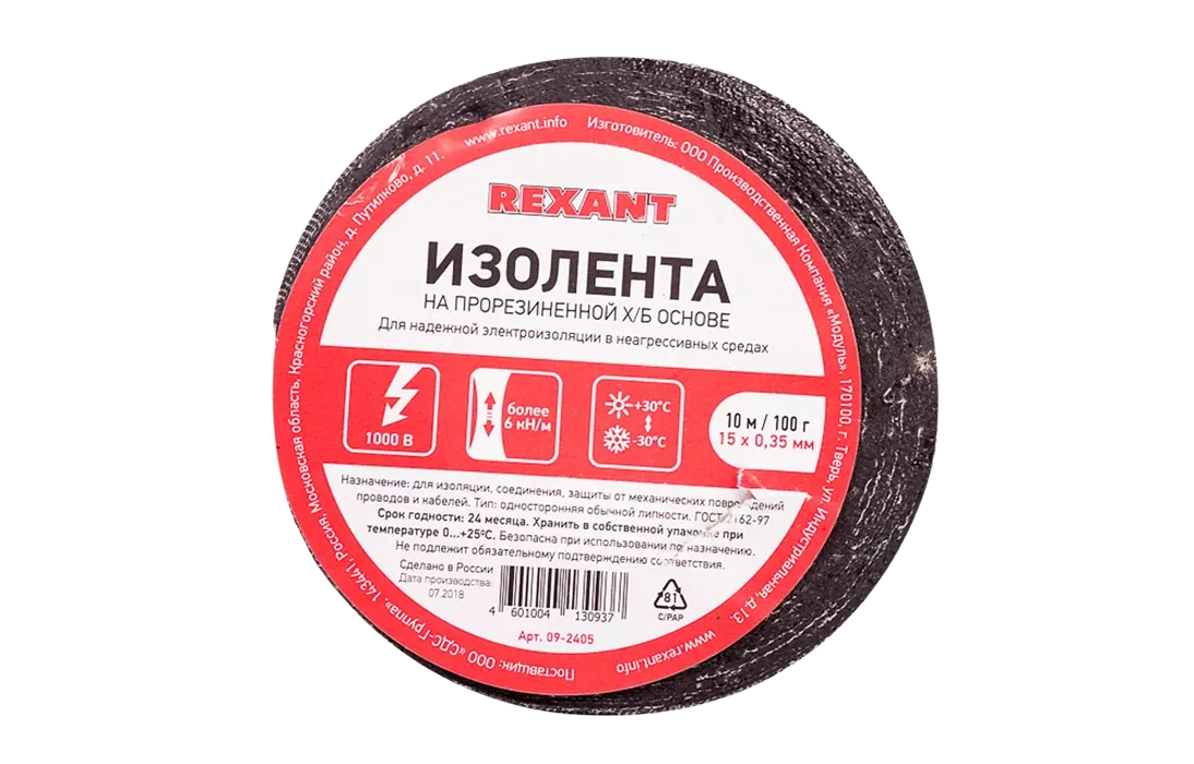 09-2405 Изолента ХБ REXANT 15 х 0,35 мм, (ролик 10 м/100 г) (1-ПОЛ)