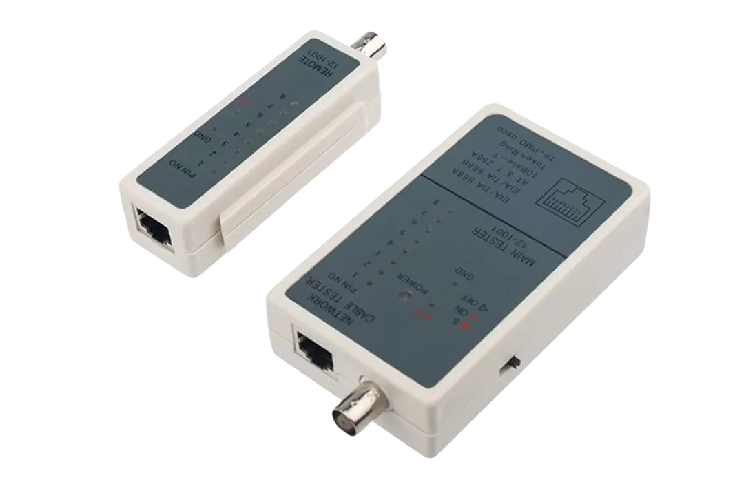 Тестер кабеля RJ-45 + BNC 5248 REXANT предназначен для тестирования коаксиальных кабелей и кабелей на основе витых пар. Тестер состоит из двух функциональных блоков — передатчика и приемника, которые подключаются к концам кабельной линии через разъемы RJ-45 или BNC.