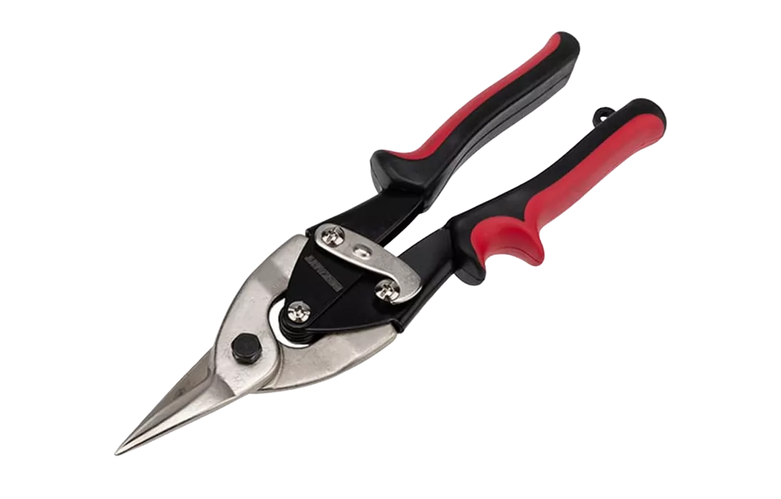 Ножницы предназначены для прямого реза металла толщиной до 1,2 мм и нержавеющей листовой стали толщиной 0,7 мм. Хромованадиевый сплав, из которого изготовлен инструмент, обладает такими свойствами, как прочность, жесткость и устойчивость к износу. Во время прокаливания сплав менее подвержен деформациям и потере первоначальной формы, чем другие типы инструментальной стали. Никелевое покрытие защищает ножницы от образования ржавчины, тем самым продлевает их срок службы. Ножницы оснащены усиленными двухкомпонентными рукоятками, которые имеют специальную форму и обеспечивают дополнительный комфорт при работе. Для удобства хранения и транспортировки предусмотрен запорный механизм, который удерживает режущие кромки ножниц в закрытом положении.
