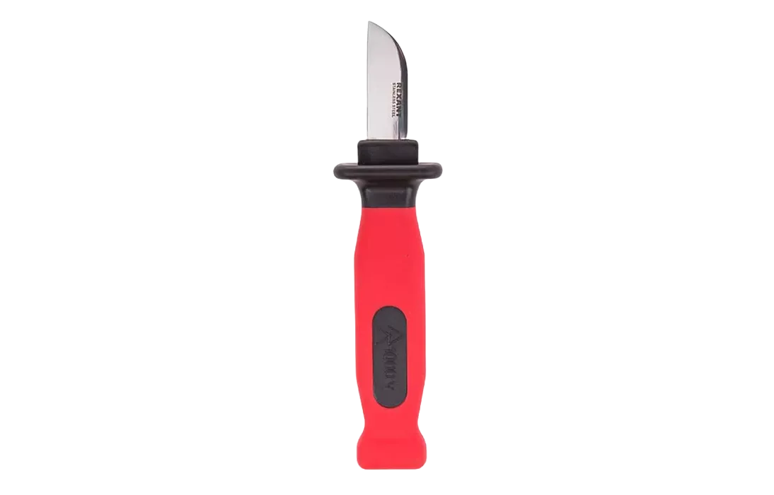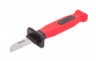 Нож монтажника предназначен для удаления изоляции с многожильного кабеля и других электромонтажных работ. Нож имеет усиленное лезвие толщиной 2,5 мм, изготовленное из нержавеющей стали, благодаря чему он защищен от коррозии и имеет продолжительный срок эксплуатации. За счет прецизионной заточки лезвия инструмент обеспечивает высокое качество снятия оболочки без риска повредить жильную изоляцию. Мощная противоскользящая двухкомпонентная рукоятка изготовлена из мягкого пластика и гарантирует комфорт и безопасность, а специальный упор предотвращает соскальзывание руки на лезвие во время работы. Для удобного хранения и транспортировки ножа предусмотрены пластиковые ножны.