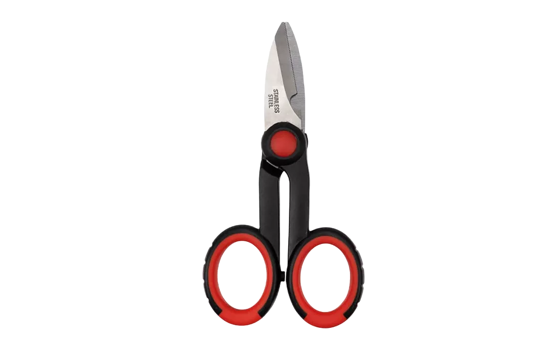 Универсальные ножницы предназначены для резки кожи, резины, картона, пластика, гофры, медных проводов, кабеля. Инструмент изготовлен из нержавеющей стали, благодаря чему защищен от коррозии и имеет продолжительный срок эксплуатации. Лезвия ножниц качественно заточены и обеспечивают аккуратный и точный рез. На одном из лезвий есть выемка, которая позволяет фиксировать провода и удерживать их на месте во время разрезания для большей точности и безопасности. Двухкомпонентные защитные рукоятки с резиновыми вставками не дают инструменту выскальзывать из руки при работе.