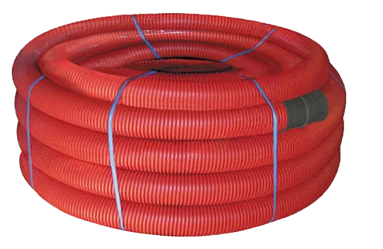 121914 Двустенная труба ПНД гибкая для кабельной канализации д.140мм с протяжкой, SN6, 500Н, в бухте 50м, цвет красный
