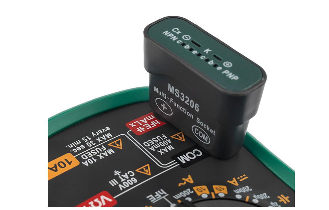 С помощью данного прибора можно проводить тестирование диодов, прозвонку целостности цепи и измерение коэффициента усиления транзисторов. Кроме того, мультиметр MS8360E оборудован специальным датчиком (NCV), с помощью которого вы бесконтактно сможете определить есть ли напряжение на участке, например в розетке, если есть необходимость демонтировать ее, то с помощью данного мультиметра вы сможете сразу узнать если ли в ней напряжение. Таким образом, один прибор сможет заменить сразу несколько устройств одновременно. Но заточен данный мультиметр на измерение емкости и индуктивности, поэтому и носит название измеритель емкости и индуктивности.