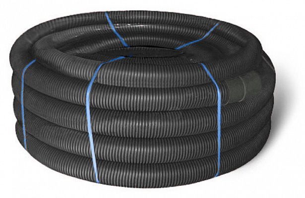 151911 Двустенная труба ПНД гибкая для открытой прокладки д.110мм,SN8, УФ, с протяжкой, в бухте 50м, цвет черный