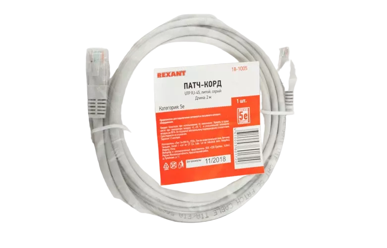 18-1012 REXANT Патч-корд UTP кат. 5e, длина 25 метров, неэкранированный, серый