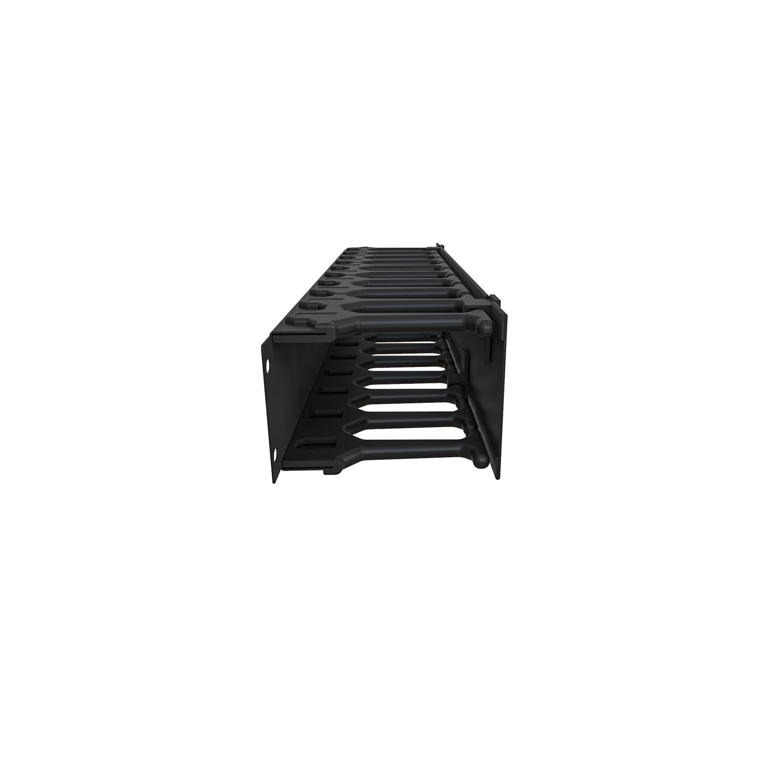 В основе конструкции организатора - сегменты пластиковых «пальцев» на стальном основании со стальной крышкой, что делает кабельный организатор удобным и подходящим для защиты и поверхность 19” профилей в шкафах серии ПРОЦОД и других серий. Не выходит за габарит высоты в юнитах, т.е. для высоты 1U общая габаритная высота не повышает 44мм а для 2U 88мм, что позволяет устанавливать организаторы совместно с любым оборудованием отвечающим требованиям ANSI/ EIA RS-310 D.