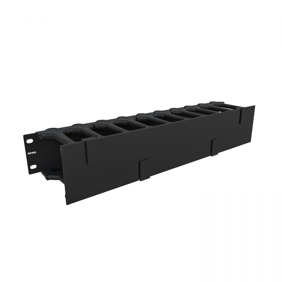 19'' Горизонтальный кабельный органайзер с пальцами и крышкой NTSS, 2U, глубиной 112 мм, черный RAL 9005