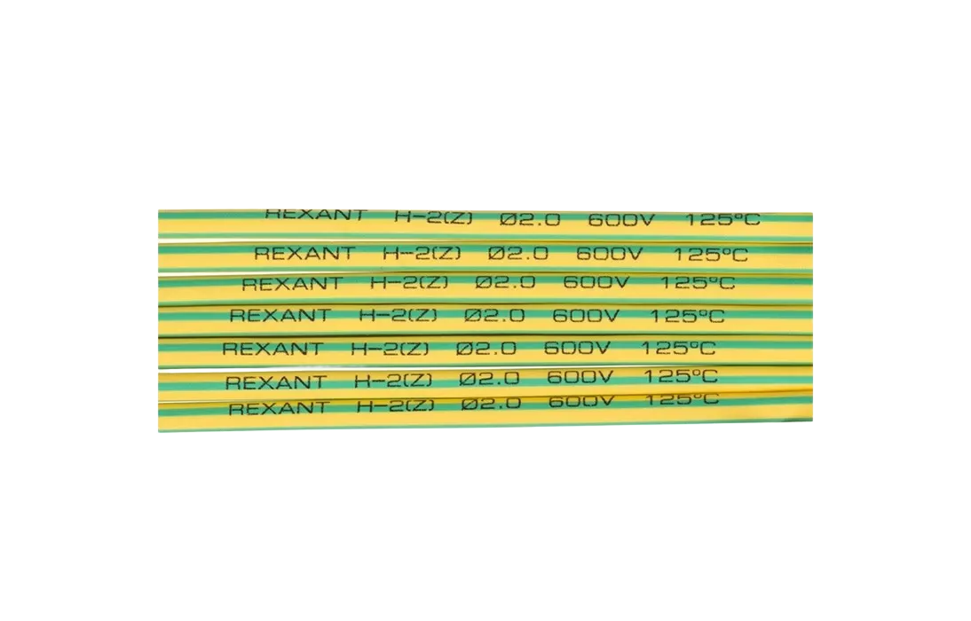 20-2007 Термоусадочная трубка REXANT 2,0/1,0 мм, желто-зеленая, упаковка 50 шт. по 1 м