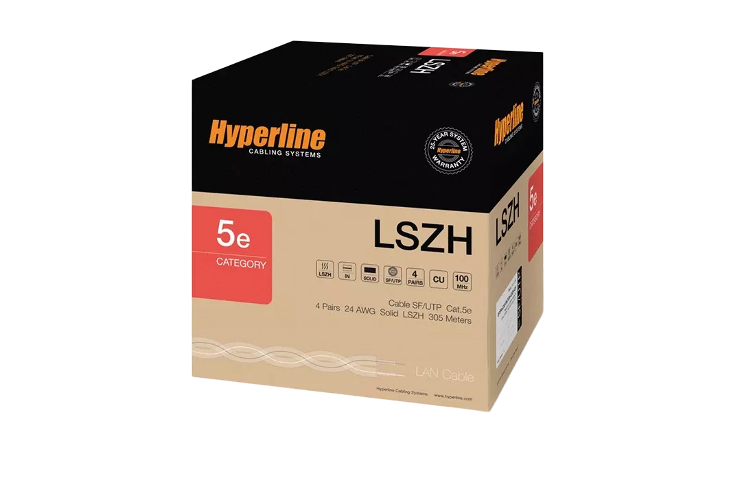 246264 Hyperline SFUTP4-C5E-S24-IN-LSZH-GY-305 (305 м) Кабель витая пара SF/UTP, категория 5e, 4 пары (24 AWG), одножильный (solid), экран - фольга +