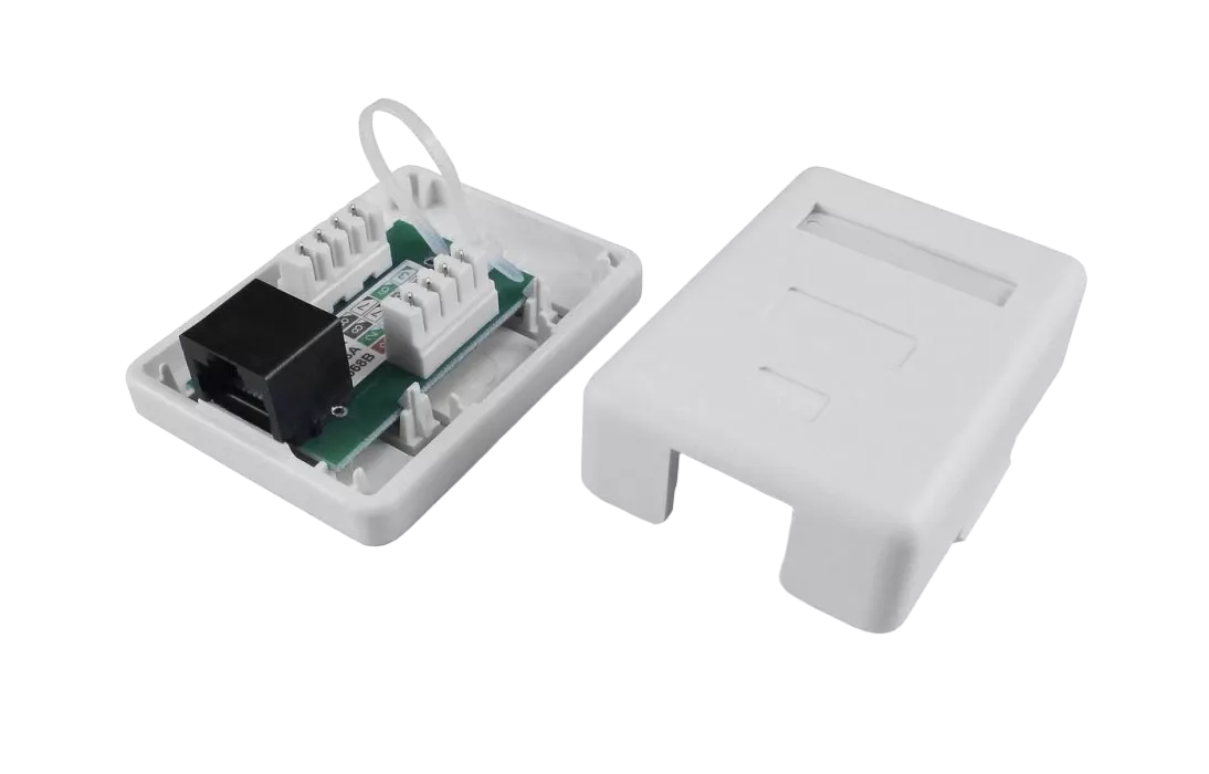 430230 Hyperline SB1-1-8P8C-C5e-WH Розетка компьютерная RJ-45(8P8C), категория 5e, одинарная, внешняя, Dual IDC