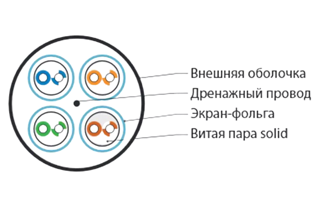 В основе кабеля лежат пары, образованные двумя токопроводящими медными проводниками, покрытыми изоляцией из ПВХ и скрученными между собой с определенным шагом навивки и защищенными внешней оболочкой.