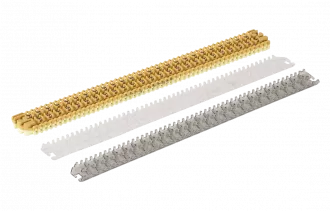 Предназначен для прямого сращивания 25 пар одновременно. Крышка модульного соединителя используется для нанесения маркировки и нумерации пар. Основания и крышки прозрачны, что позволяет визуально проконтролировать правильность сращивания пар.