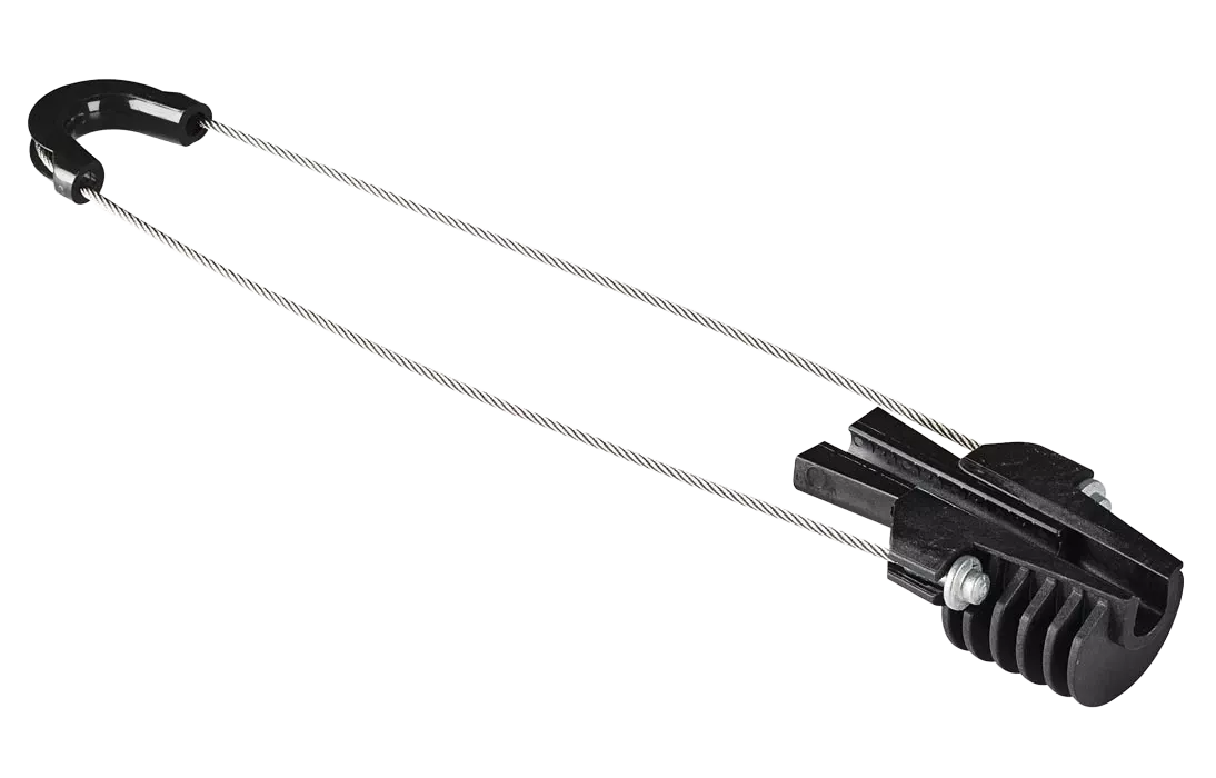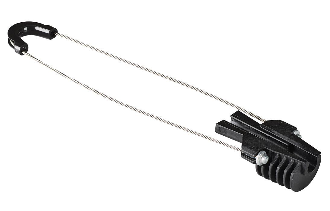 Предназначен для крепления оптического кабеля с внешним диэлектрическим силовым элементом (тросом). Позволяет просто и быстро закрепить кабель типа "8" за вынесенный диэлектрический трос. Нет необходимости оголять или же отделять несущий трос. Обеспечивает значительное сокращение продолжительности процесса подвес кабеля.
