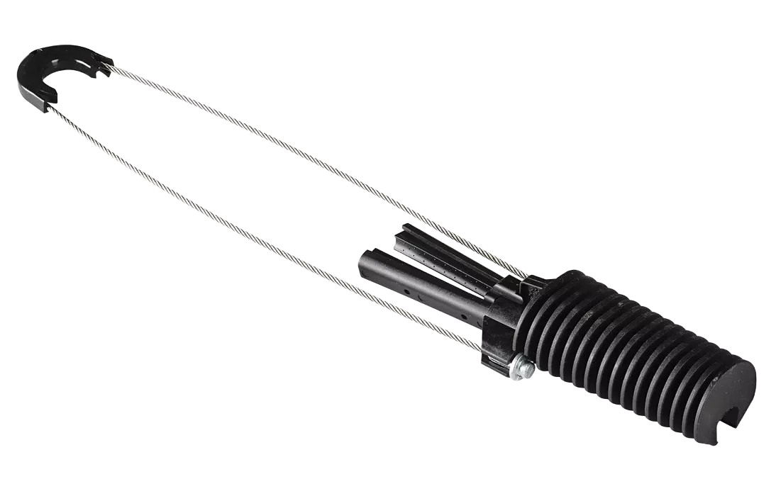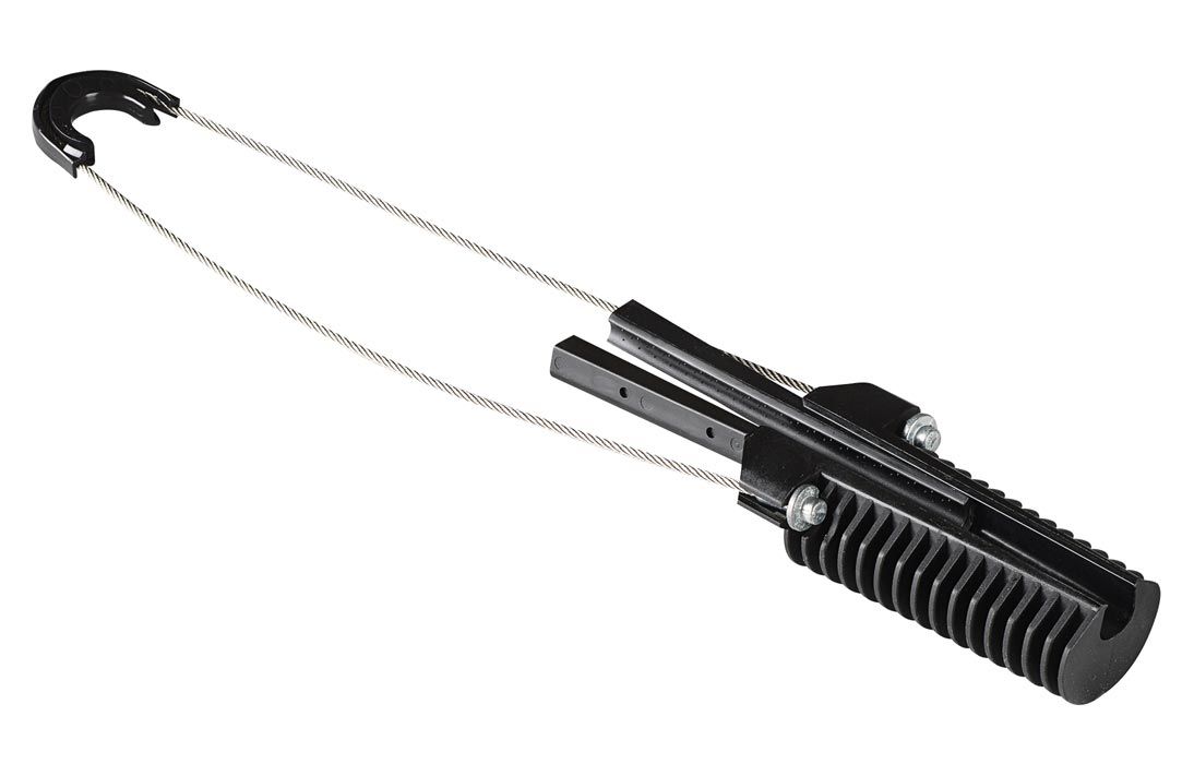 Предназначен для крепления оптического кабеля с внешним диэлектрическим силовым элементом (тросом). Позволяет просто и быстро закрепить кабель типа "8" за вынесенный диэлектрический трос. Нет необходимости оголять или же отделять несущий трос. Обеспечивает значительное сокращение продолжительности процесса подвес кабеля.