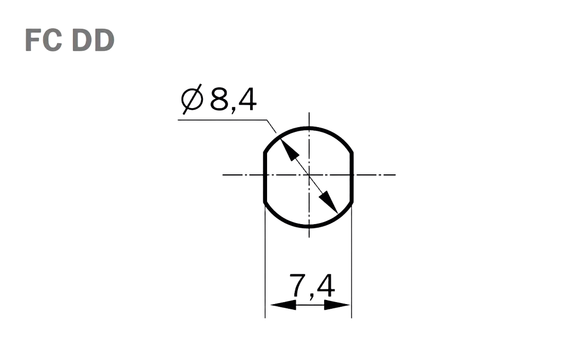 Адаптер (оптическая розетка) предназначен для стыковки одномодовых оптических соединителей (коннекторов, разъёмов) FC/APC-типа. Отличием адаптеров является нестандартный посадочный размер так называемого DD-типа, размеры которого приведены на рисунке.
