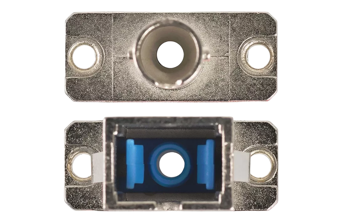 Фиксация разъёма SC-типа осуществляется с помощью скрытых защелок, а разъёма ST-типа посредством байонетного крепления. На присоединительных частях корпуса адаптера имеются выемки под ключ вилок коннекторов.