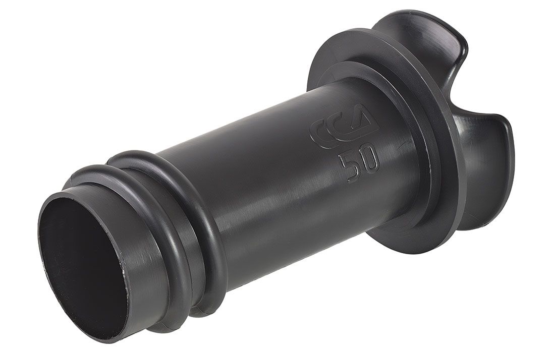 Предназначен для герметичного ввода трубы полимерной жесткой гофрированной спиральной (ССД-Пайп) в пластиковые кабельные колодцы путём её надёжного резьбового крепления к стенке колодца.