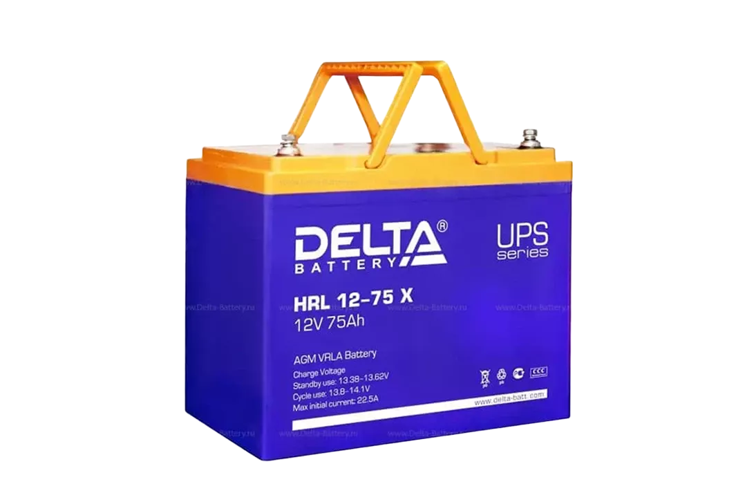 Delta HRL 12-75 X – это обновленный в 2018 году выпускавшийся с 2003 года аккумулятор Delta HRL 12-75 из серии аккумуляторов Delta HRL (UPS Series). Аккумулятор сменил цвет с оранжевого на синий и в маркировке получил дополнительный индекс «X». Герметизированный VRLA cвинцово-кислотный аккумулятор Delta HRL 12-75 X напряжением 12В и емкостью 75Ач изготовлен по технологии AGM (с микропористым заполнителем, пропитанным электролитом). Корпус изготовлен из негорючего ABS пластика.