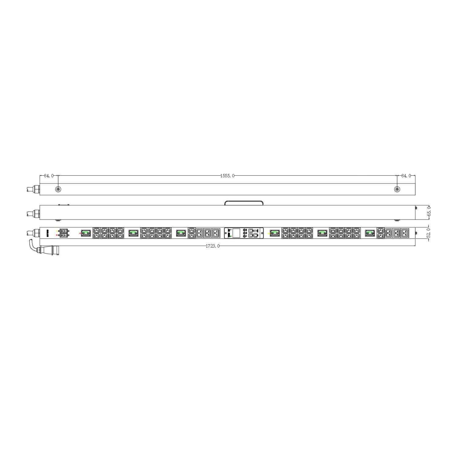 Блок распределения питания NTSS Managed, 1ф32А, 7.4кВт, 2 автоматических выключателя, (36)С13, (6)С19, 3м кабель с вилкой IEC 60309, 1782х65х65 мм