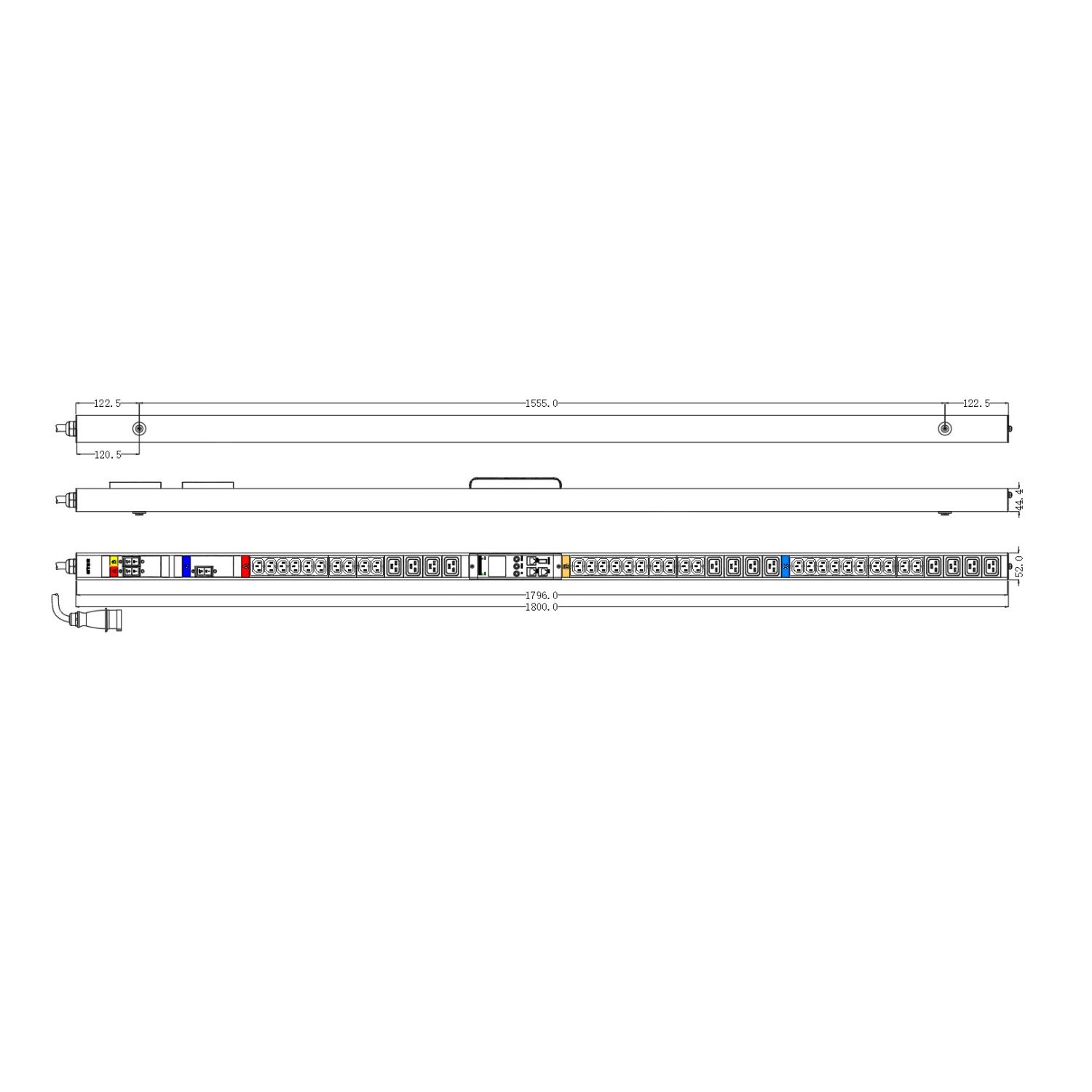 Блок распределения питания NTSS Metered, 3ф32А, 22кВт, 3 автоматических выключателей, (30)С13, (12)С19, 3м кабель с вилкой IEC 60309, 1802х52х50 мм